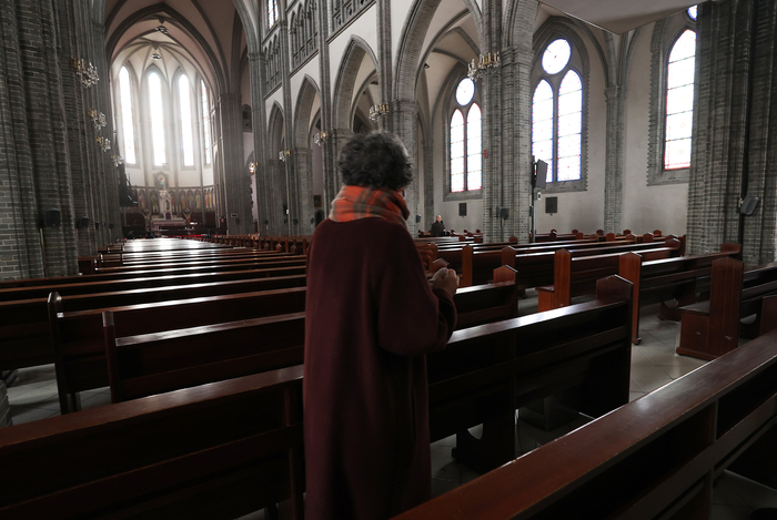 [쿠키뉴스] 배성은 기자 =신종 코로나바이러스 감염증(코로나 19)이 급속히 확산되면서 한국 천주교회 16개 모든 교구가 신자들과 함께하는 미사를 중단한다.모든 미사를 중단하는 것은 한국 천주교회 236년 역사상 처음 있는 일이다.