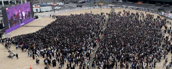 지난해 3월 그룹 방탄소년단의 영상을 보기 위해 모인 '아미'. /사진=홍봉진 기자 |