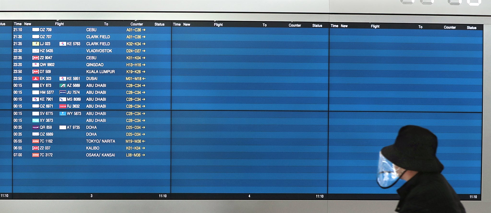 일본이 한국인 입국 제한을 강화한 9일 인천국제공항 1터미널 출발 항공편 안내판이 비어 있다. 김성룡 기자 |