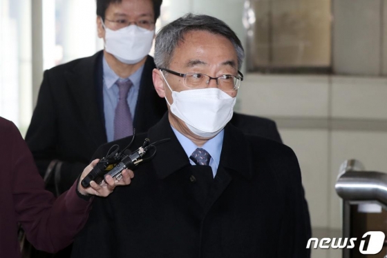 사법행정권 남용 의혹을 받아 구속기소됐다가 지난 13일 보석 석방된 임종헌 전 법원행정처 차장이 16일 오후 서울 서초구 서울중앙지방법원에서 열린 직권남용권리행사방해 등 혐의 관련 속행 공판에 출석하고 있다./사진=뉴스1 |