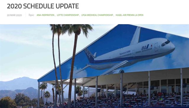 미국여자프로골프(LPGA) 투어가 5월 중순까지 예정된 대회 일정을 모두 보류하기로 했다. 시즌 첫 메이저대회 ANA인스퍼레이션은 일단 9월로 연기했다.
