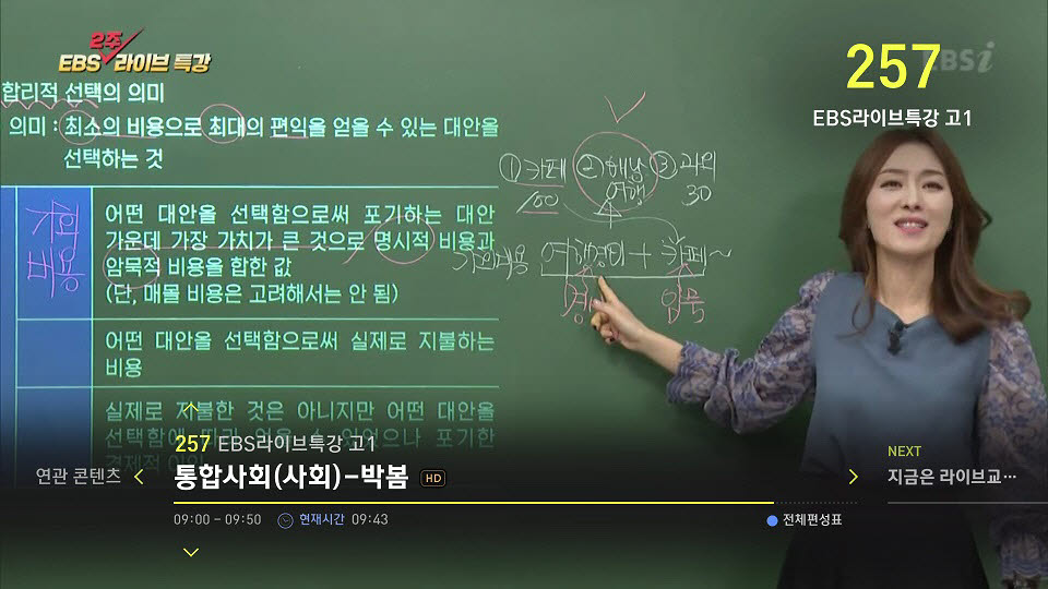 티브로드 디지털채널 257번에 방송 중인 고1 EBS 라이브 특강 |