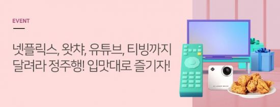 우리카드 고객(법인·기프트 카드 제외)이 5월 말까지 넷플릭스, 유튜브 프리미엄, 왓챠, 티빙에서 5000원 이상 이용하면, 추첨을 통해 포스빅 미니빔 프로젝터(3명), 교촌 허니오리웨지감자세트(300명)를 받을 수 있다.