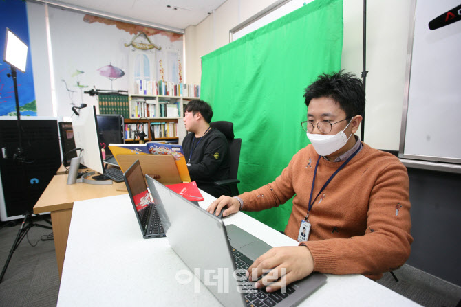 지난 9일 의정부 경민여중 온라인수업 현장.(사진=정재훈기자) |