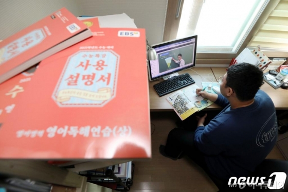 (서울=뉴스1) 이광호 기자 = 신종 코로나바이러스 감염증(코로나19) 확산 차단을 위해 전국 중·고교가 중3·고3부터 온라인으로 개학한 9일 고3 수험생이 서울 강서구의 집에서 원격수업을 듣고 있다. '온라인 개학'은 이날 고교 3학년과 중학교 3학년을 시작으로, 오는 16일 고교 1, 2학년과 중학교 1, 2학년 및 초교 4~6학년, 오는 20일 초교 1~3학년 학생이 순차적으로 원격수업으로 정규 교육과정을 시작하게 된다. 2020.4.9/뉴스1 |