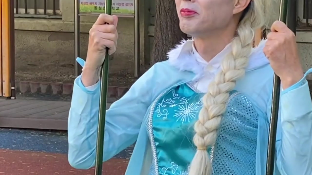 겨울왕국의 주인공 '엘사'로 분장한 이 남성은 부산의 한 초등학교 교장 선생님입니다.