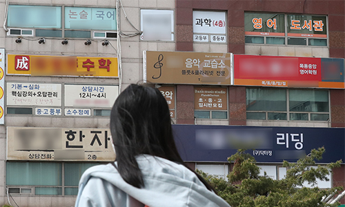 신종 코로나바이러스 감염증(코로나19)으로 인한 정부의 고강도 사회적 거리두기가 완화되면서 휴원에 들어갔던 학원들이 속속 문을 열고 있다. 사진은 22일 서울 양천구의 한 학원 밀집지역. 뉴스1 |