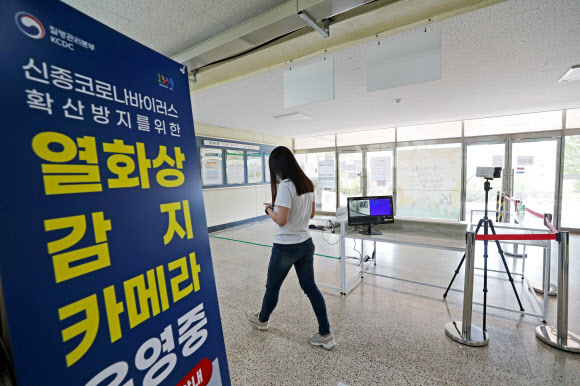 개학 앞두고 학교에 설치된 열화상 카메라 - 5월 초부터 부분 등교 개학이 예상되는 가운데 28일 오후 서울 마포구 서울여자고등학교에 개학을 앞두고 열화상 카메라가 설치돼있다. 2020.4.28 연합뉴스 |