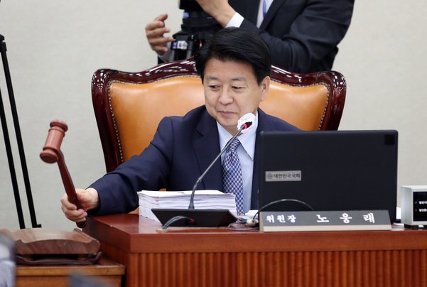 7일 오전 국회에서 열린 과학기술정보방송통신위원회 전체회의에서 노웅래 위원장이 의사봉을 두드리고 있다. /연합뉴스 |