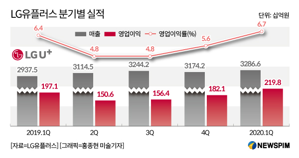 LG유플러스는 1분기 모바일 서비스 수익은 코로나19 영향으로 단말기 판매량이 줄었지만 전년 동기 대비 6.2% 증가한 1조3360억원을 기록했다.