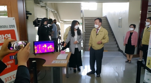(대전=연합뉴스) 조성민 기자 = 설동호 대전시교육감은 등교수업을 앞두고 11일 충남여고를 찾아 방역과 개학 준비 상황 등을 점검했다.