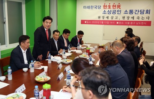 (서울=연합뉴스) 이은정 기자 = 미래한국당 원유철 대표 등 지도부는 15일 서울 중구의 한 음식점에서 '소상공인 현장 소통 간담회'를 열고 신종 코로나바이러스 감염증(코로나19) 사태에 따른 애로사항을 청취했다.
