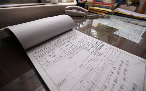 지난 4월 27일 경비원 최희석 씨가 작성한 근무일지가 경비초소 책상에 놓여 있다. 연합뉴스 |