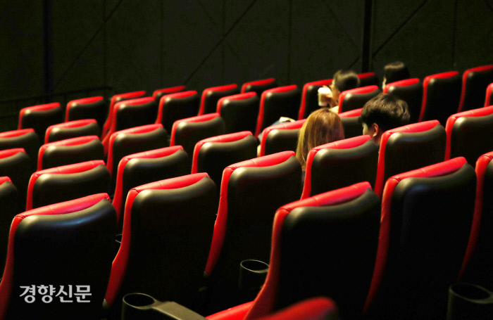 코로나19가 한창 확산하던 지난 3월8일 휴일임에도 서울 한 영화관의 좌석 대부분이 빈 채 한산하다. 김창길 기자 cut@kyunghyang.com |