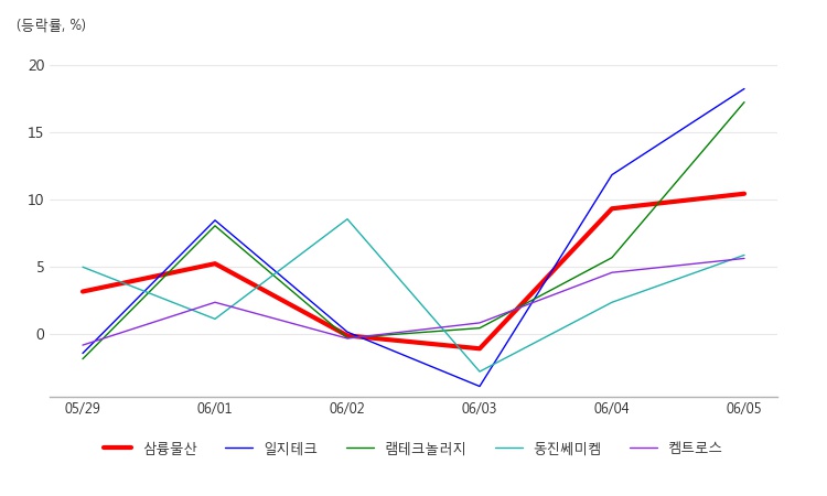 [그래프] 日 수출 규제(국산화 등) 테마 주요 종목 등락률