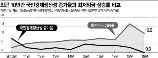 2019년 최저임금상승률 11% vs 생산성증가율 0%