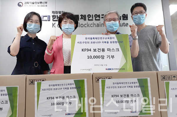 (재)한국블록체인연구교육원이 서초구청에 KF94 마스크 1만 장을 기부했다.