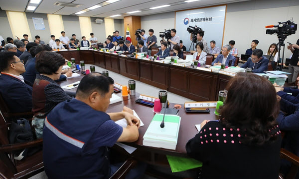 작년 7월 세종시 정부세종청사 고용노동부에서 열린 최저임금위원회 전원회의. /연합뉴스 |