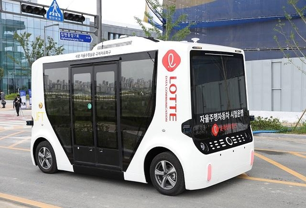 롯데정보통신은 이날 뉴질랜드 자율주행 기업 오미오 오토메이션과 협력해 자율주행 셔틀의 시연을 진행했다. 시연에 사용된 차량은 미국 SAE(미국자동차기술자협회) 기준 최고 수준인 4단계의 고도 자율주행이 가능하다.