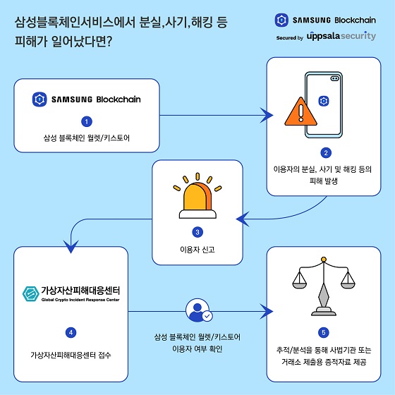 이번 제휴로 '삼성 블록체인 월렛' 이용자가 서비스 사용 중에 발생한 가상자산 피해를 신고하면, 웁살라시큐리티 '가상자산 피해대응 센터'(CIRC)가 사건을 조사·분석한다.