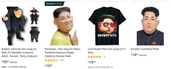 아마존에서 판매했던 김정은 북한 국무위원장 관련 핼러윈 소품. 기사 본문과는 무관. /2019년 아마존 사이트 캡처 |