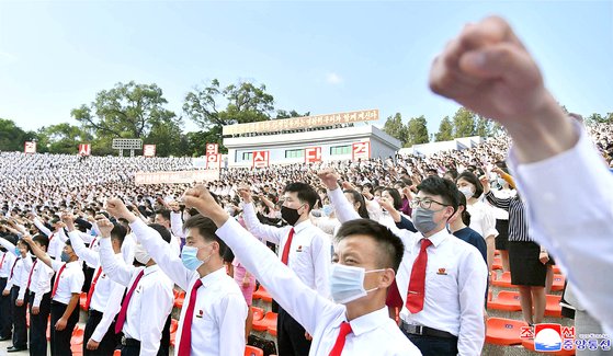 북한 청년들이 탈북자들의 대북전단 살포를 절대 용납할 수 없다고 성토하는 군중 집회를 열었다고 조선중앙통신이 지난달 6일 보도했다. 연합뉴스 |