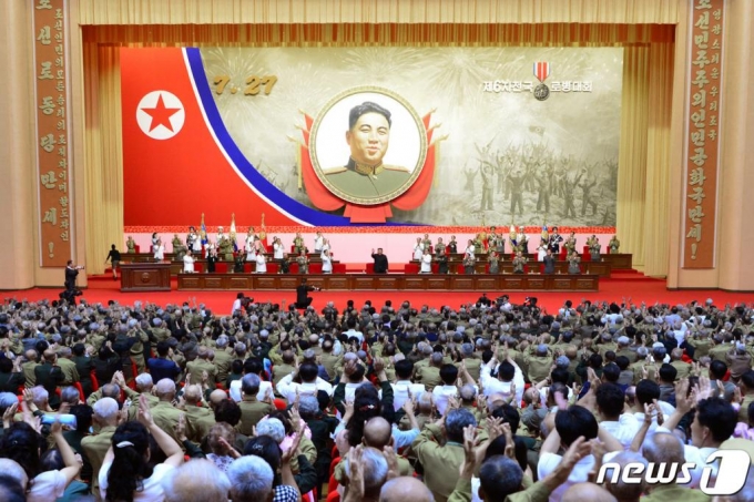 김정은 북한 국무위원장이 27일 평양 4·25문화회관에서 열린 제6차 전국노병대회에 참석해 직접 연설했다고 노동당 기관지 노동신문이 28일 1면에 보도했다. 김 위원장은 "우리의 믿음직하고 효과적인 자위적 핵 억제력으로 국가의 안전과 미래는 영원히 굳건하게 담보될 것"이라고 밝혔다./사진=(평양 노동신문=뉴스1) |
