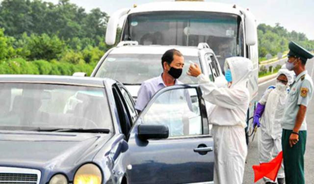 북한 평양시 만경대구역에서 의료진이 운전자의 체온을 측정하고 있다. 연합뉴스 |