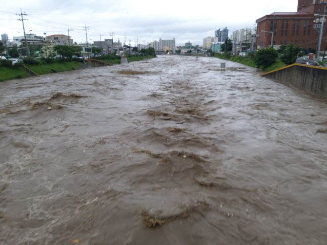 대전 지역 하천도 물이 불어나면서 범람 우려가 커지고 있다. 대전은 하천변 침수에 대비해 모든 지역의 하상도로를 전면 통제하고 있다.