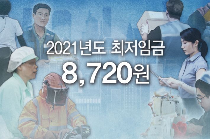 고용노동부는 2021년도 적용 최저임금을 시간급 8720원으로 5일 관보에 고시했다.