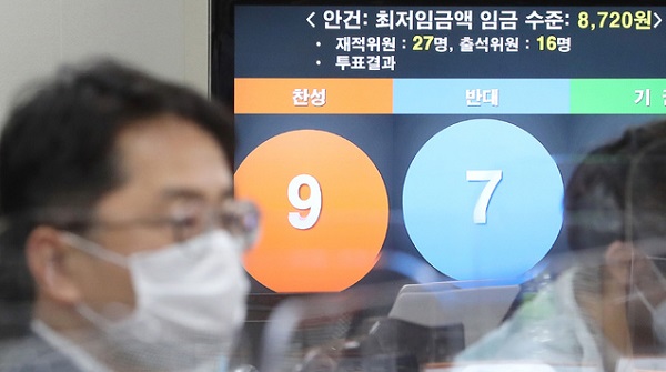 최저임금위원회는 신종 코로나바이러스 감염증(코로나19)에 따른 경기 위축을 반영한 결과라고 설명했다.