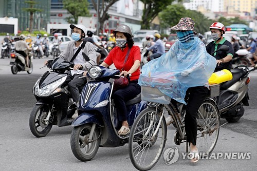 마스크 쓰고 출근하는 베트남 하노이 시민 |