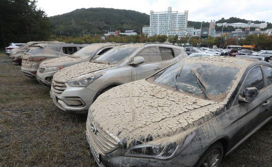흙으로 뒤덮인 침수 차량.(사진=연합뉴스) |