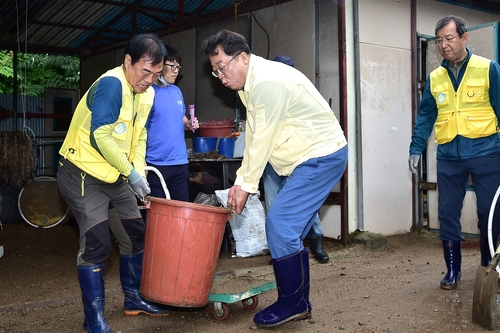 전날 시청 공무원 680여명이 침수 주택의 가재도구 정리, 청소, 도로 토사 제거, 농경지 정리 등 복구 활동을 벌인 데 이어 이날도 650여명이 수해 현장에 투입됐다.