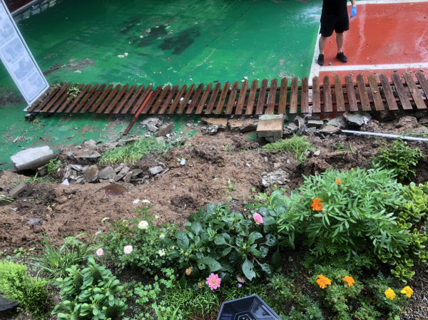 지난 8일 대구 수성구 범어동 한 주택가에서 집중 호우로 울타리가 무너졌다./대구소방본부 |
