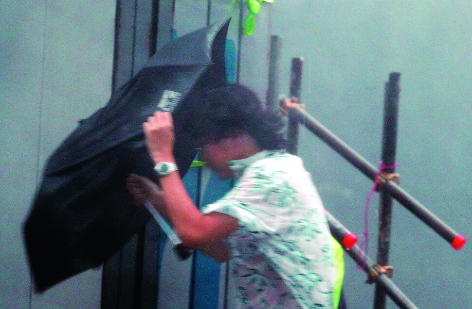 제17호 태풍 '타파’가 북상 중인 지난해 9월22일 오후 부산 해운대해수욕장 앞바다에서 거대한 파도가 강풍과 함께 해안으로 몰아치고 있다. 해운대 도로에 시민들이 우산을 쓴 채 걸어가고 있다. 부산/ 김봉규 선임기자 bong9@hani.co.kr |