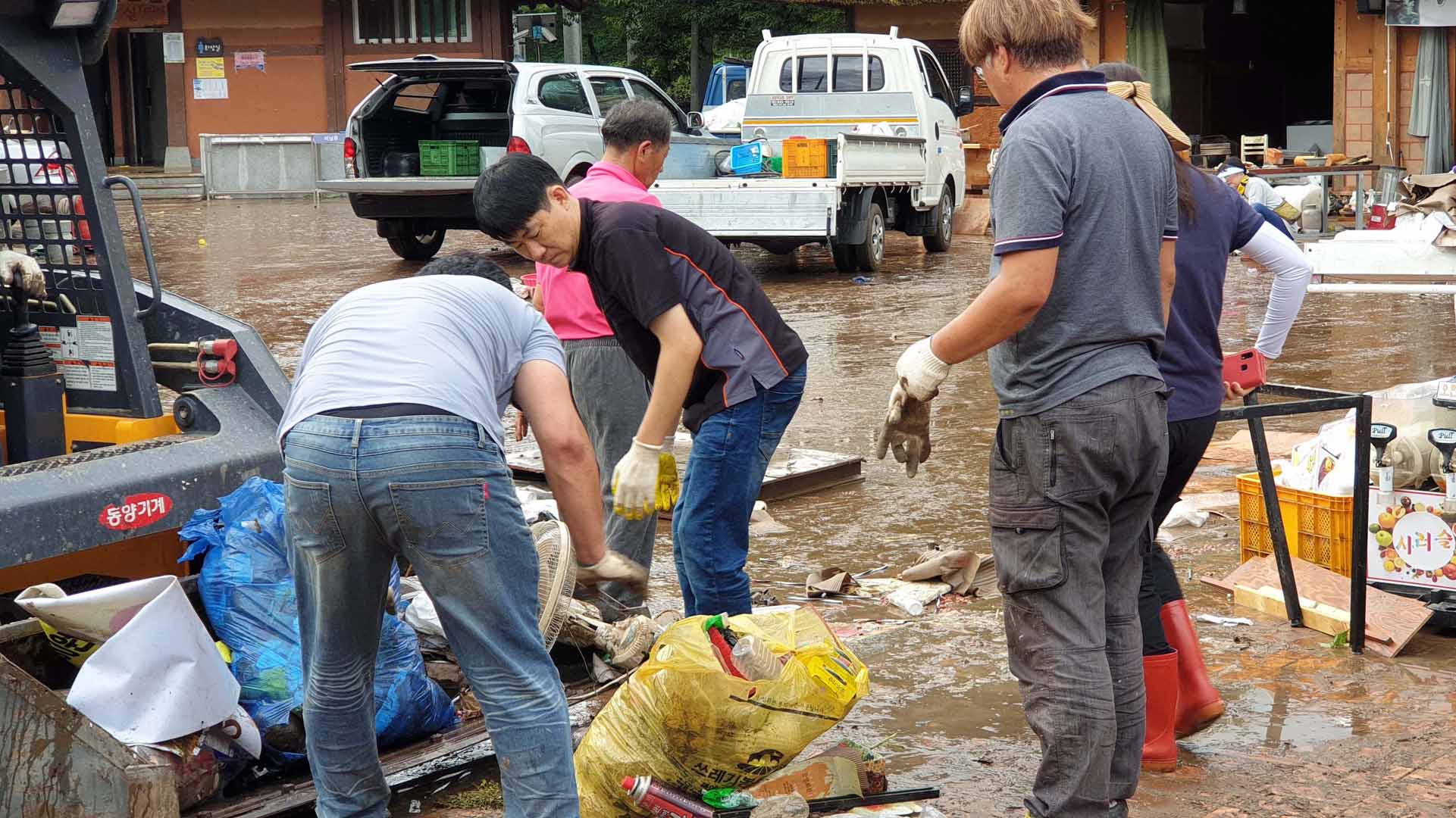 복구작업이 한창인 가운데, 제5호 태풍 '장미'가 북상한다는 소식에 주민들은 전전긍긍하고 있습니다.