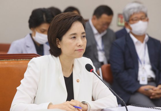 유은혜 사회부총리 겸 교육부 장관이 지난달 28일 국회 교육위원회 전체회의에서 의원들의 질의를 듣고 있다. 연합뉴스 |
