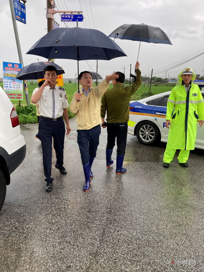 특히 많은 비로 범람 위기에 놓인 이서면 마산천을 찾아 농경지 침수는 물론 주민들의 안전에 만전을 기해 줄 것을 부탁했다.