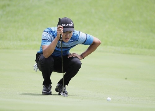 김성현이 최종라운드 도중 9번 홀에서 퍼팅 라인을 읽고 있다. [사진=KPGA] |