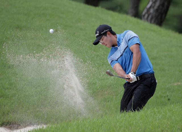 김성현이 9일 경남 양산시 에이원컨트리클럽 남ㆍ서코스에서 열린 제63회 KPGA 선수권대회 최종라운드에서 9번홀에서 벙커샷을 시도하고 있다. KPGA 제공 |