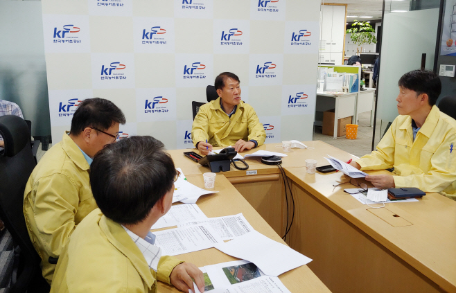 농어촌 경기지역본부가 경기지역 전역에 호우특보가 발효됨에 따라 집중호우 및 태풍 장미 북상에 따른 대응상황 점검과 피해 예방을 위한 긴급대책회의를 진행했다./제공 = 경기지역본부 |