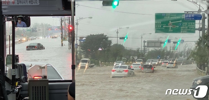 10일 오후 5~6시께 침수된 양주역 일대 ⓒ 뉴스1 |