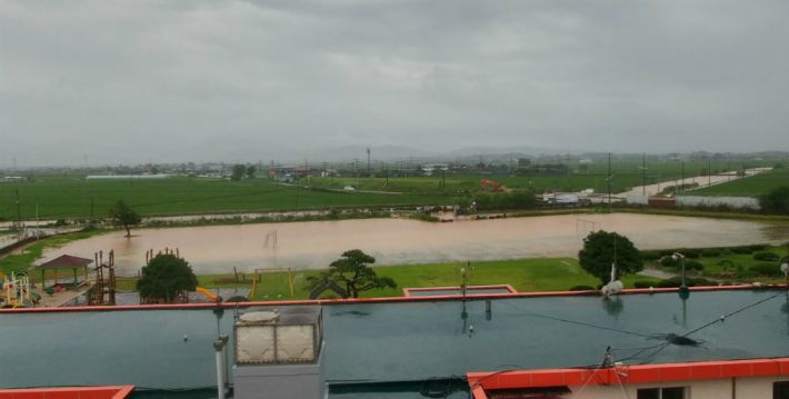 운동장 침수 피해가 발생한 김제 봉남초(사진=전북교육청 제공) |
