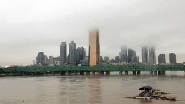 장마가 계속되고 있는 11일 오전 한강대교에서 바라본 모습. 지난 6월 24일 시작한 올해 중부지방 장마가 이날까지 이어져 가장 장마가 길었던 2013년 49일 기록과 같아졌다. [연합] |
