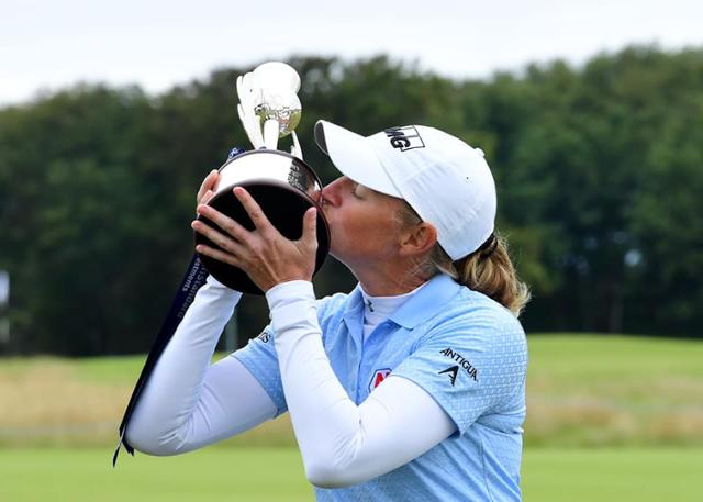 스테이시 루이스가 17일 영국 스코틀랜드 노스 버윅의 르네상스 클럽에서 열린 LPGA 투어 레이디스 스코틀랜드오픈에서 우승한 뒤 트로피에 입을 맞추고 있다. LPGA 홈페이지 |