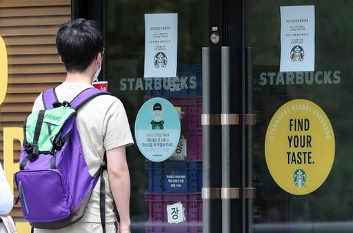 17일 경기도 파주 스타벅스 야당역점이 신종 코로나바이러스 감염증(코로나19) 관련 안내문과 함께 폐쇄돼 있다. 뉴스1 |