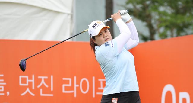 박인비가 7일 경북 경주시 블루원 디아너스 골프클럽에서 열린 2020 오렌지라이프 챔피언스트로피 박인비 인비테이셔널 첫날 포볼 매치플레이 경기에서 티샷하고 있다. 경주=연합뉴스 |