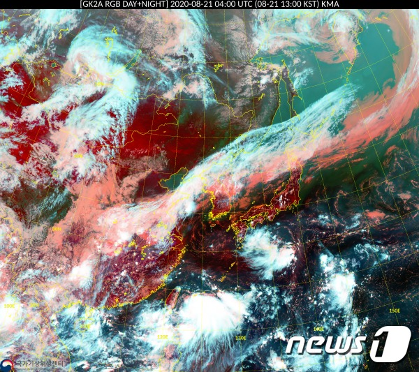 기상청 날씨누리 위성 기본영상에 21일 오후 1시 기준 동아시아 RGB 주야간 합성영상(기상청 제공) © 뉴스1 황덕현 기자 |