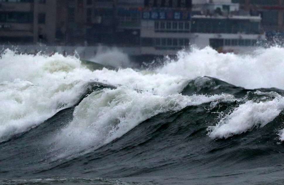 제5호 태풍 ‘장미’가 상륙한 지난 10일 오후 부산 해운대해수욕장에 높은 파도가 일고 있다. 연합뉴스 |
